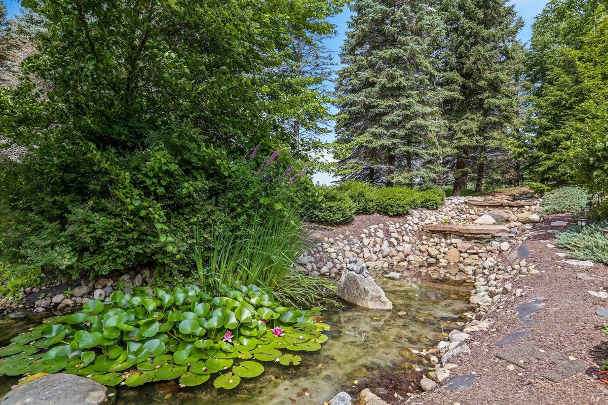 A breath taking cascading waterfall runs along the entire length of the property and the lakefront is the perfect spot to fish from or just relax at the lakes edge. For the young or young at heart, the lodge offers a game room area with a pool table, foosball, ping pong table, air hockey and a full size poker table. A complete second living room along with an 8 foot bar with a beverage center containing a refrigerator and coffee station completes the interior of the game room.