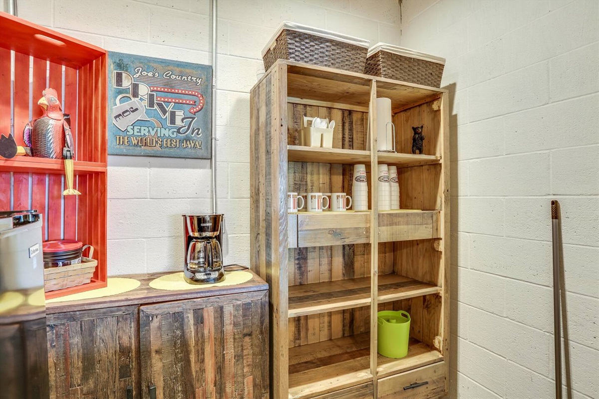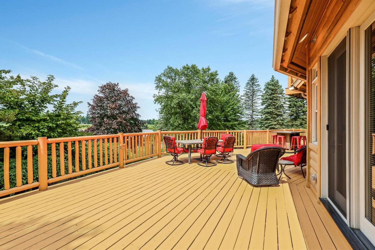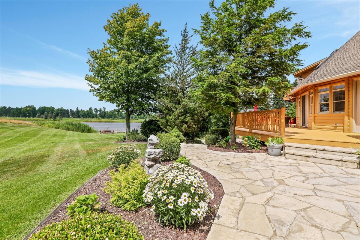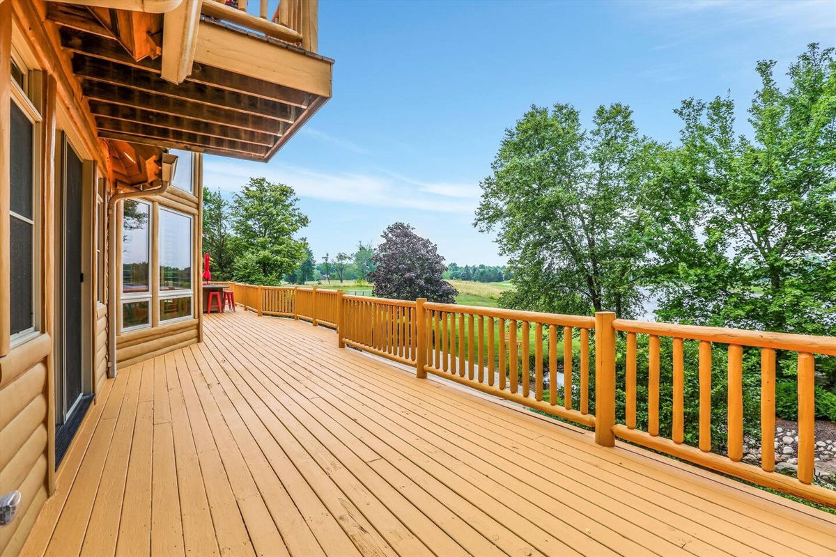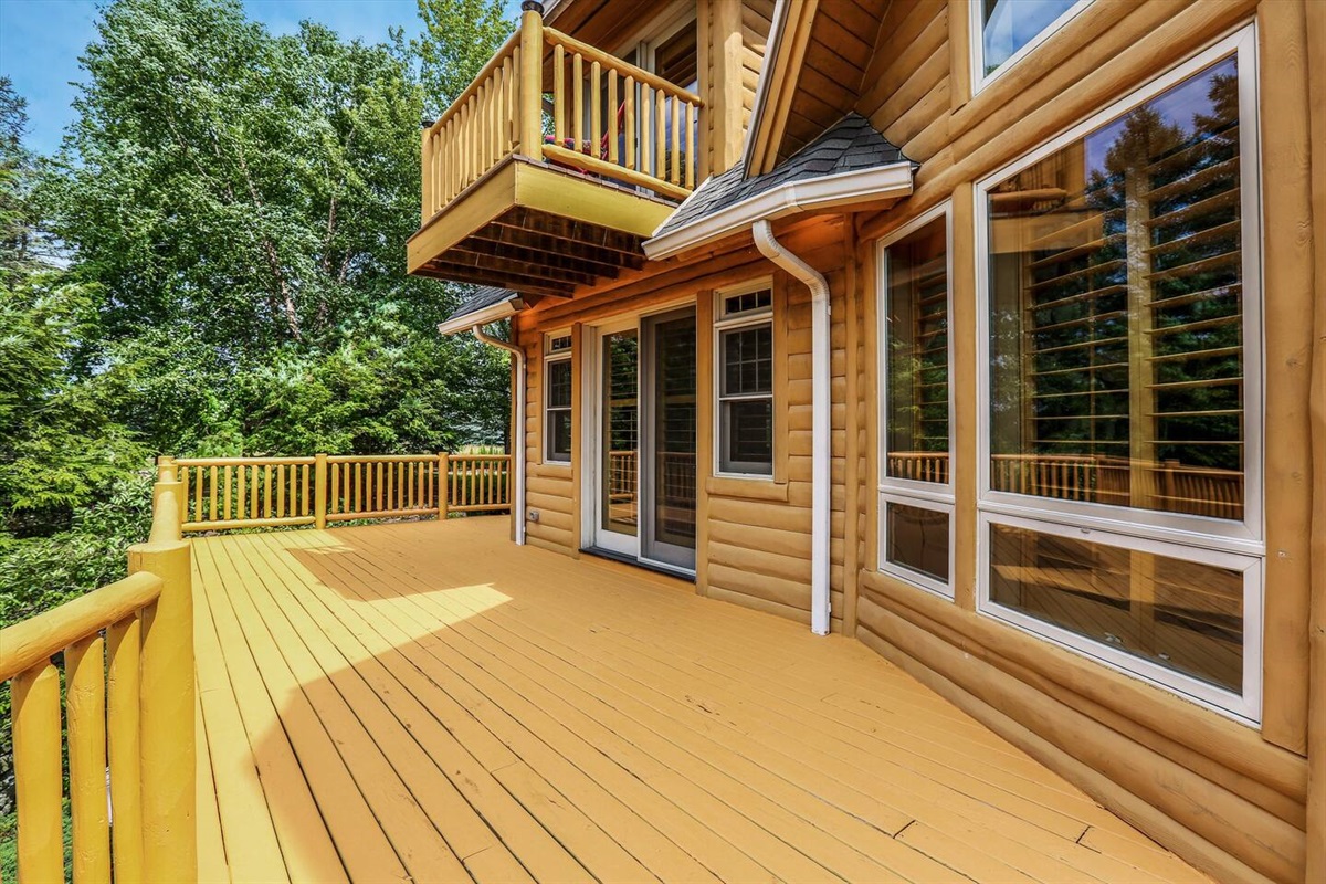 The wrap around main deck provides a large gas grill, bar height fire table, , numerous seating areas, patio tables, chairs and umbrellas. The brick paver patio provide guests with a 4 person hot tub and an outdoor basketball hoop. A stainless steel fire pit for a wood burning camp fire as well as a custom made benches and tables is located at the water front. Camp fire wood is provided for each night stay.