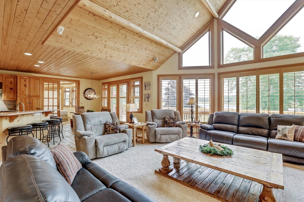 This magnificent 10,000 square foot lakefront lodge features 180 degree lake and golf course views from nearly every room. It is perfect for multiple family retreats, golf stay and play or corporate functions. The Lodge can accommodate up to 24 guests with 21 beds, 6 large bedrooms and 5 spacious bathrooms on three floors.